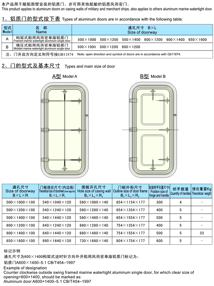 船用风雨密单扇铝质门