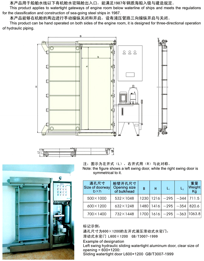 船用液压滑动式水密门