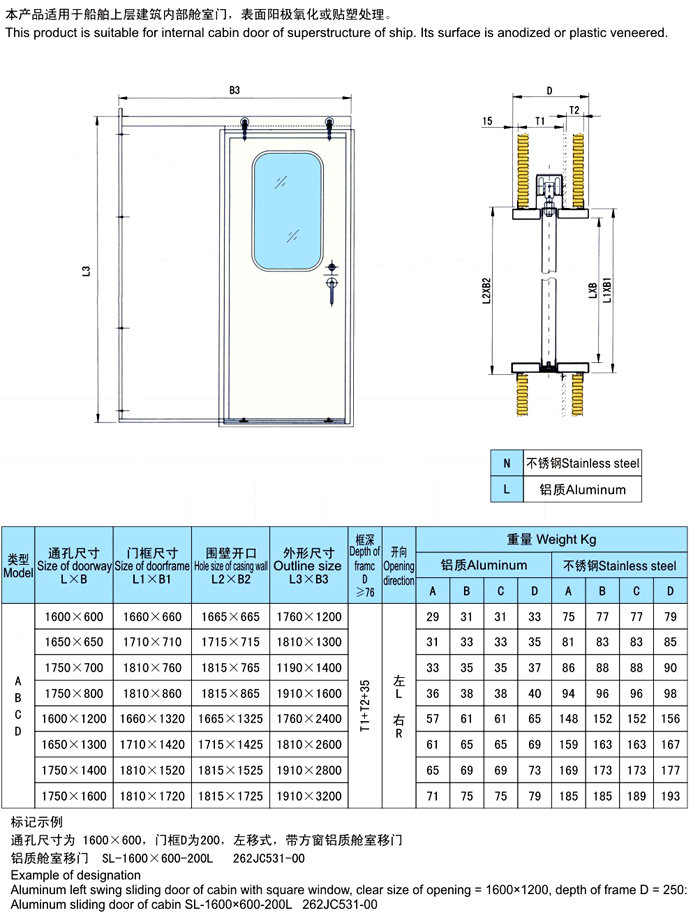 不锈钢、铝台金舱室移门