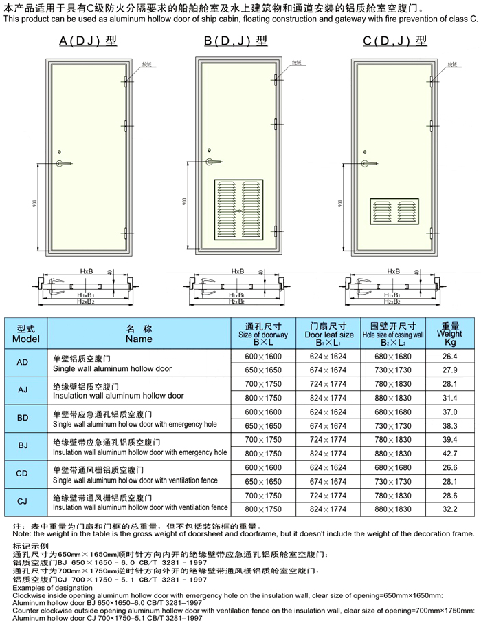 铝质舱室空腹门