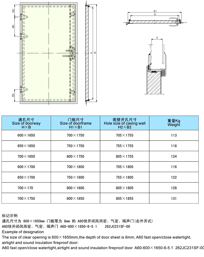 A60陕开闭风雨密、气密隔声防火门
