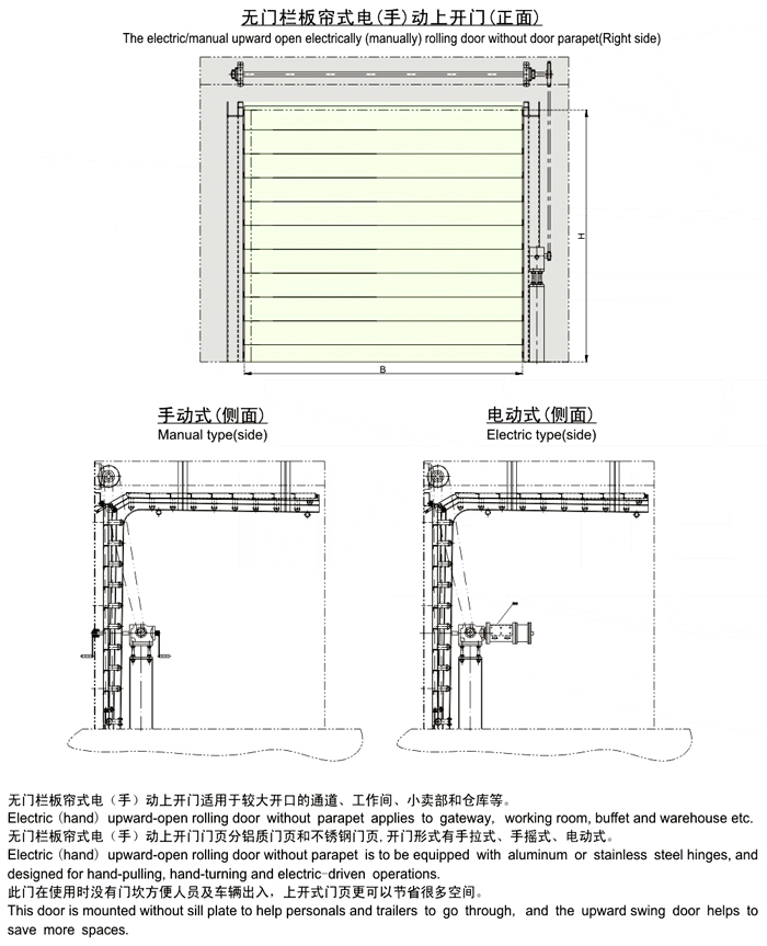 无门栏板帘式电(手)动上开门