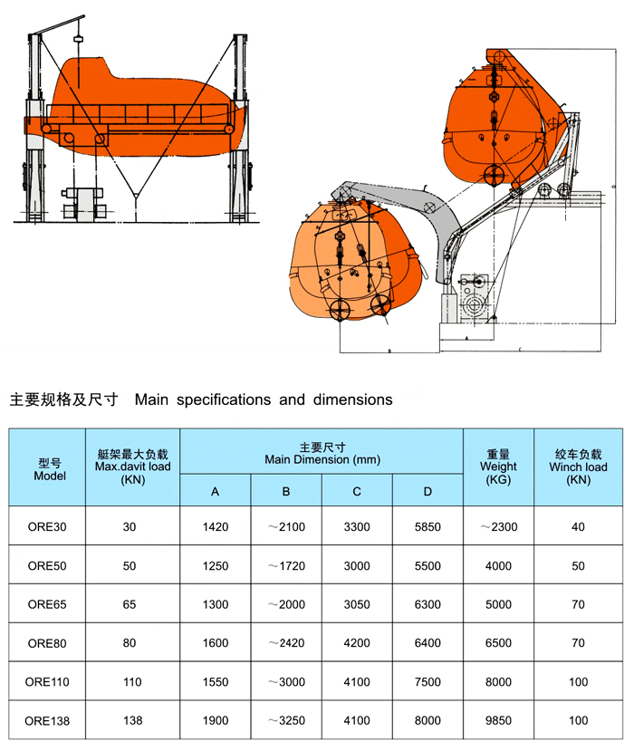 重力跨甲板型滑轨式吊艇架